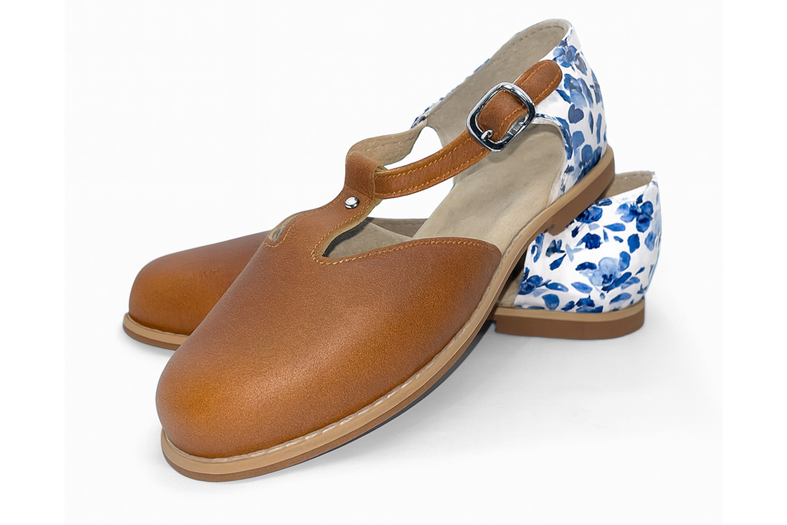Featuring a genuine Nguni cowhide upper in natural cream and tan patterns, the shoe is beautifully accented with a rose gold metallic toe cap.